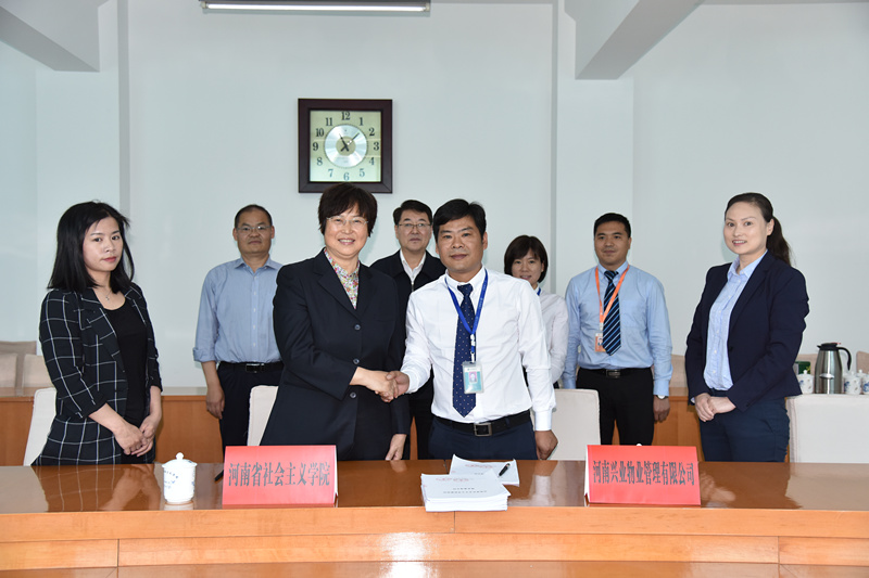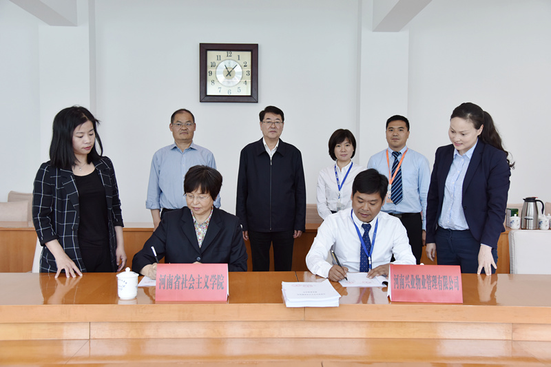 5月9日,省社院与河南兴业物业管理有限公司举行新校区服务项目合同签约仪式。党组书记、常务副院长李文斌,分管副院长卢锡恩参加仪式,总务处王华文处长与物业公司总经理朱杰分别在项目合同书上签字。至此,新校区物业服务团队正式成立。