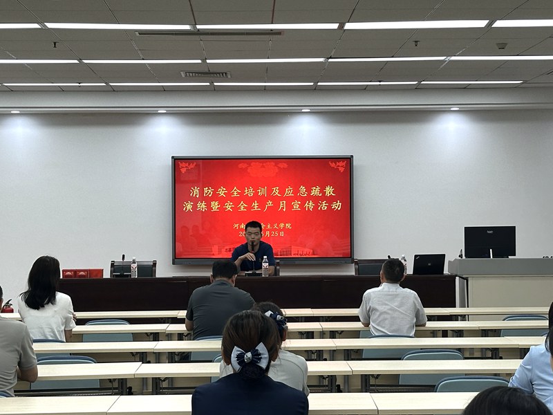 本月是安全生产月,为切实提高全体教职工及物业人员的消防安全意识和应急处置能力,6月25日上午,省社会主义学院组织开展了消防安全培训及应急疏散演练,全体教职工及物业公司员工100余人参加。