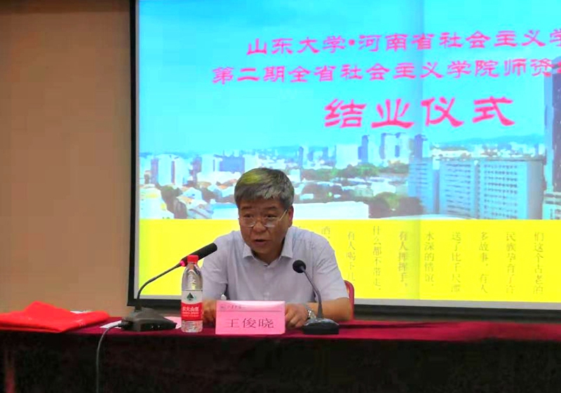 在结业仪式上,省社院副院长、党组成员王俊晓做了总结发言。王俊晓指出,这次师资培训班是省社院首次与山东大学联合举办,是一次创新性培训,受到了省委组织部、省委统战部、省社院党组以及山东大学的高度重视。他对学员提出希望,要以学习贯彻《社会主义学院工作条例》为主要抓手,深刻把握做好新时代社院工作的重要原则和重要方针,立足社院职能定位,在发挥作用上下功夫。希望在今后的工作中全省社院互通有无,共勉共进,按照中央精神和要求,携手共进,努力开创新时代社院发展新格局。