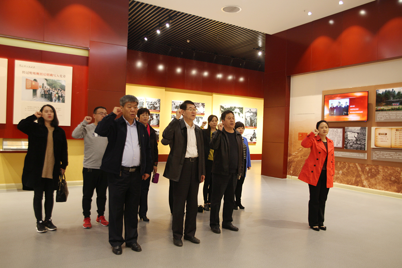 在中国共产党入党誓词的展示区,全体人员肃立,重温了入党誓词。