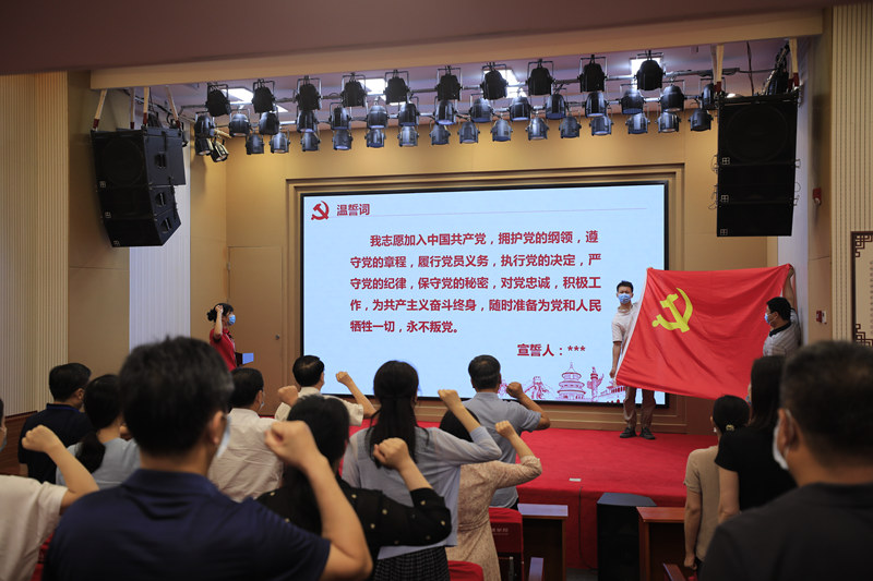 学习活动在庄严的国歌声中拉开帷幕,全体党员重温了入党誓词。