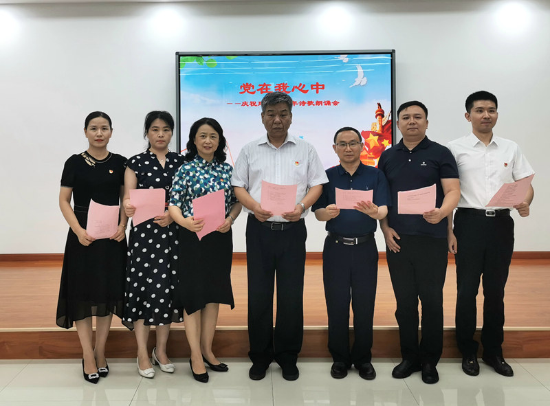 宣誓结束后,在《没有共产党就没有新中国》的乐曲中,每个党员都庄严的交纳了7月份的党费,以实际行动践行党员义务和责任,强化党员意识、铭记党员身份。之后,在省社院副院长、党组成员王俊晓朗诵的《红旗》声中诗歌朗诵会拉开了序幕。大家饱含深情地朗诵了《红色》、《庆祝党的九十九岁生日》等多首诗歌,一段段感人至深的故事,一句句发自肺腑的话语,令人动容、催人奋进,抒发着爱党爱国的的真切感情,热情讴歌了中国共产党建党99年来的光辉历程,表达了奋进新时代、共筑中国梦的坚定决心。