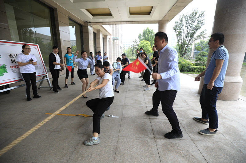 拔河场上,常务副院长、党组书记兼省委统战部副部长李文斌紧握拔河绳,与所在党支部的同志一起奋力争先参赛。领导的示范作用激发了大家参与活动的积极性和主动性,使大家迸发出了极大的热情和激情。看,当比赛的哨声响起,参赛的队员立即双脚用力、两腿绷直、身体后仰,铆足了劲往后拉;听,两旁的啦啦队喊着“一二,加油”,为队员们高呼助威,号子声、呐喊声此起彼伏。经过两轮的比拼,办公室党支部获得最终的冠军。
