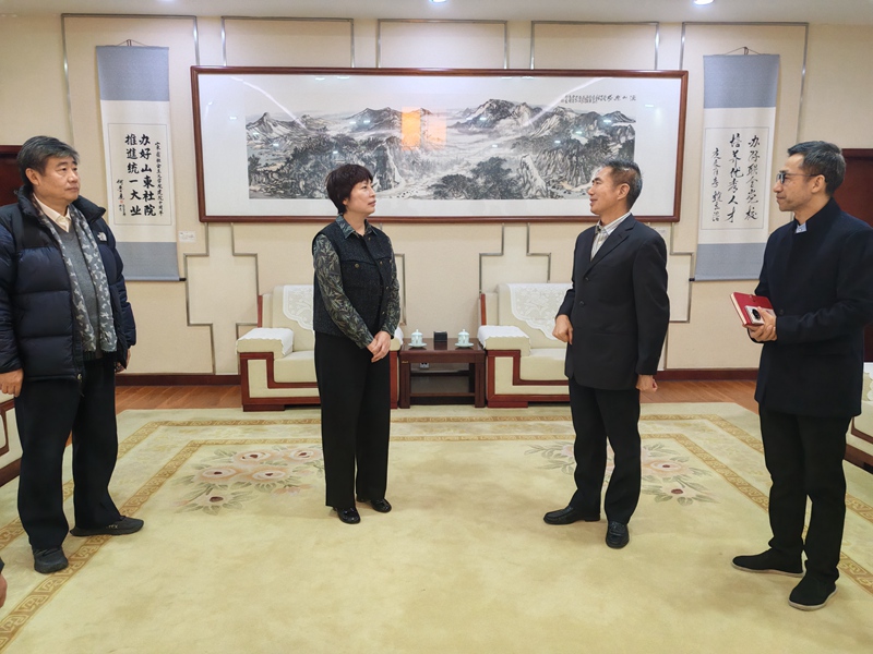 12月12日,河南省社会主义学院院长张丛乐,二级巡视员、教务处处长周翔一行赴山东省社会主义学院开展教学工作调研。山东省委统战部副部长,省社会主义学院党组书记、第一副院长孙传尚会见调研组一行,副院长孙黎海等陪同调研。