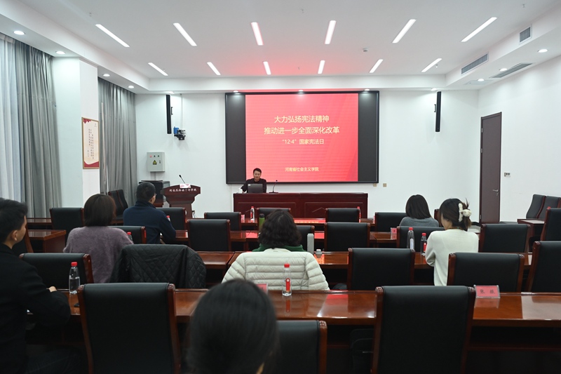 为深入贯彻落实党的二十届三中全会精神,持续巩固拓展党纪学习教育成果,进一步增学院干部职工尊法、学法、守法、用法意识,12月4日,省社会主义学院在河南焦裕禄干部学院组织普法教育专题培训,党组成员、副院长张天阵出席培训班、二级巡视员庞欣红主持开班式,学院干部职工约30余人参加。